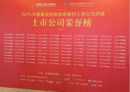 中国·必威(bw·西汉姆联)中文官方网站荣获“2015中国最受投资者尊重的百家上市公司”奖项