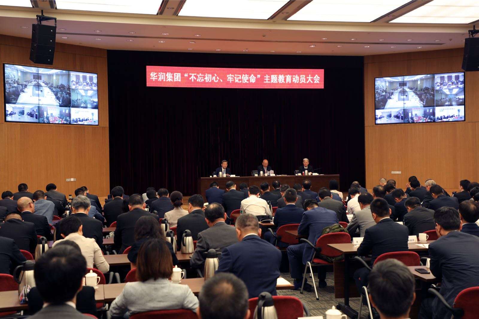 6月6日中国华润在深圳召开“不忘初心、牢记使命”主题教育动员大会,学习贯彻习近平总书记在“不忘初心、牢记使命”主题教育工作会议上的重要讲话精神,对华润开展主题教育工作进行动员和部署。中国华润董事长傅育宁做动员讲话。 “不忘初心、牢记使命”主题教育中央第三十三指导组组长牛锡明出席会议并讲话,指导组部分同志出席会议。中国华润总经理王祥明主持会议。集团管理团队成员、近三年退出集团管理团队的老同志、集团总部部室和各二级单位管理团队成员以及部分职工代表共300人参加会议。