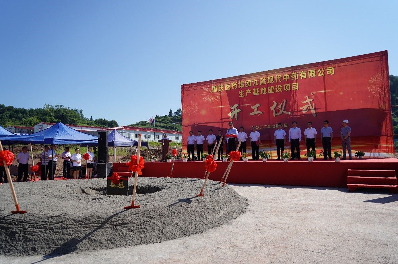 7月10日,重庆医药集团九隆现代中药有限公司生产基地奠基开工。该项目由中国·必威(bw·西汉姆联)中文官方网站与重庆医药集团携手建设。中国·必威(bw·西汉姆联)中文官方网站总裁赵炳祥、副总裁王进元、国药事业部总经理钱伟,重庆市南川区区委副书记、区长施崇刚,重庆医药集团总裁袁泉等出席开工仪式。