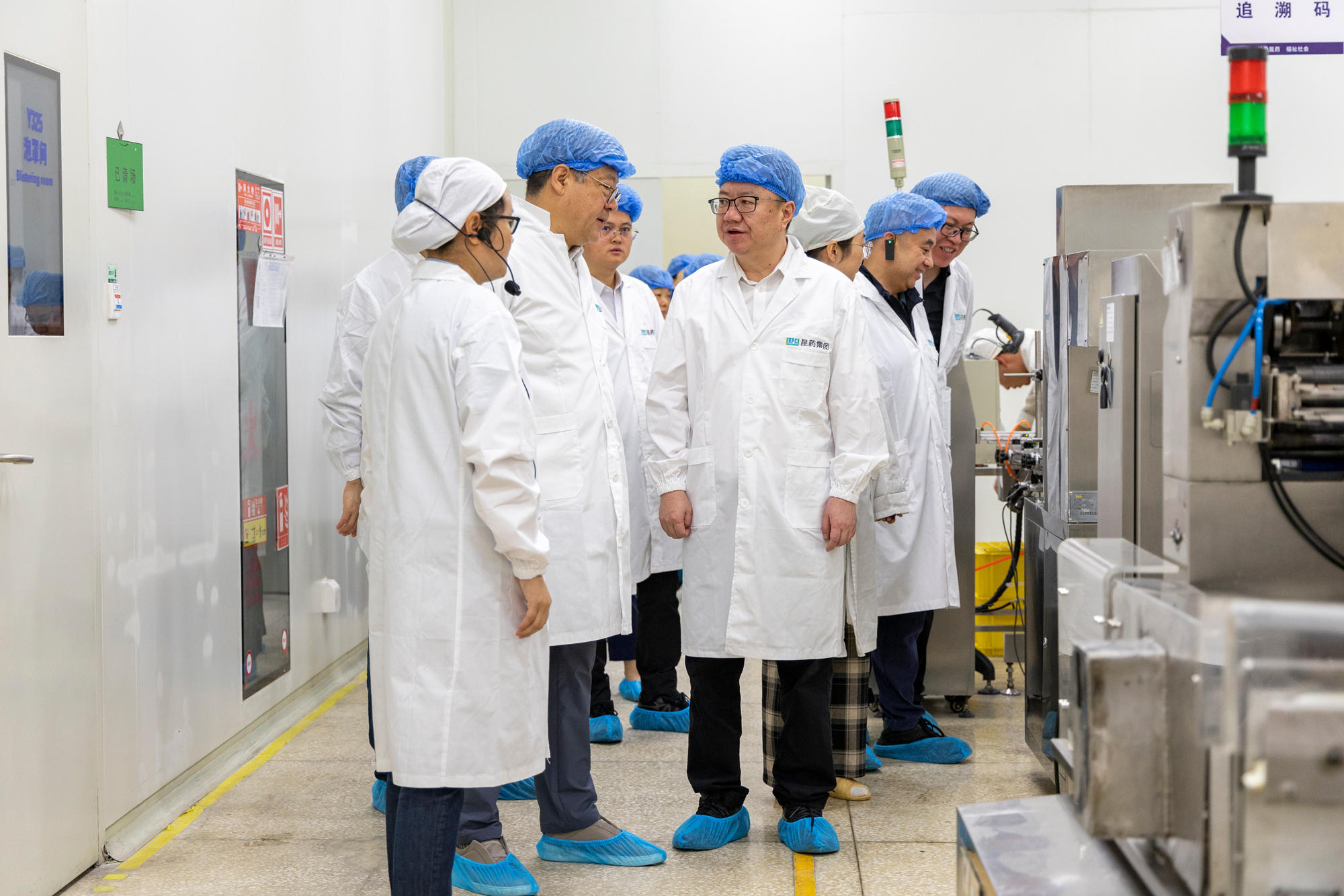 蓝屹一行参观了昆药集团注射剂生产车间及HOPE展馆,实地了解昆药发展历程,重点调研了以三七、天麻、青蒿“三棵草”为核心的特色药品研发及智能制造战略布局。