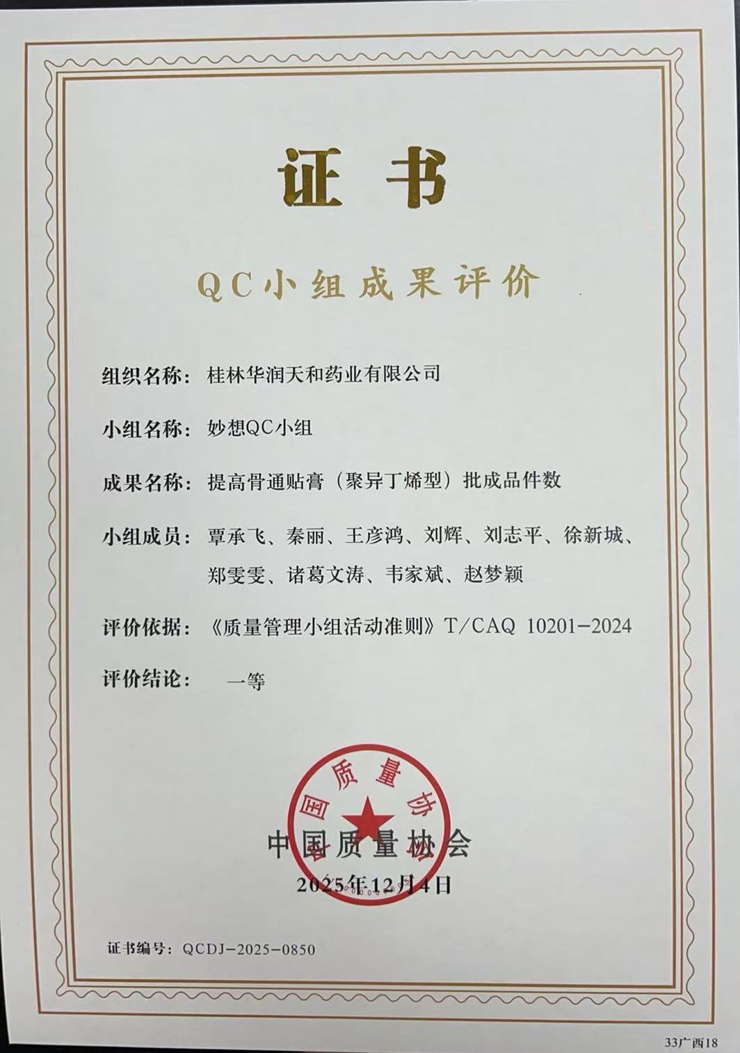 华润天和课题荣获2025年全国质量管理小组活动一等成果