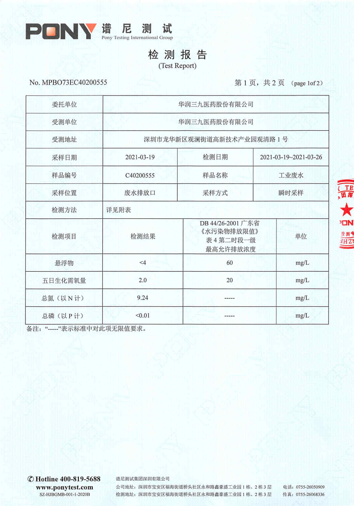 中国·必威(bw·西汉姆联)中文官方网站废水检测报告(2021年3月)