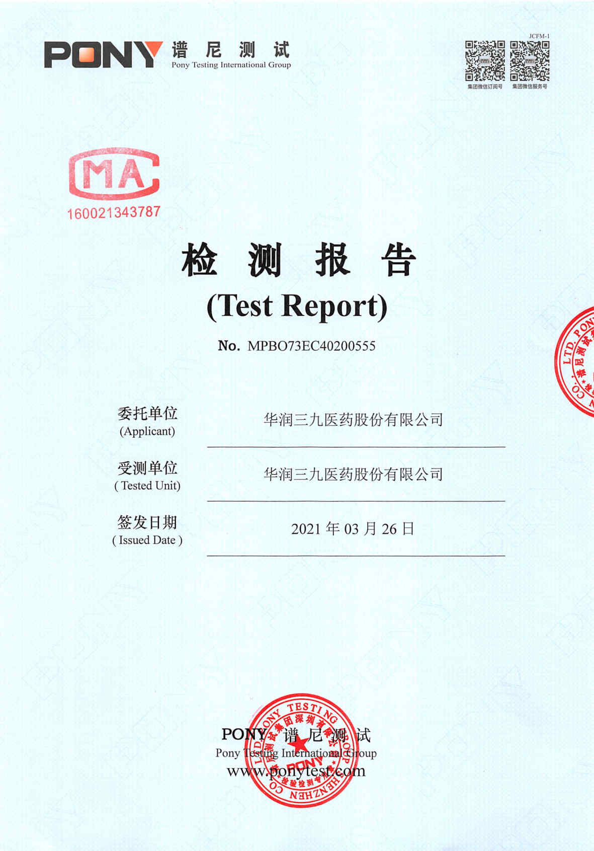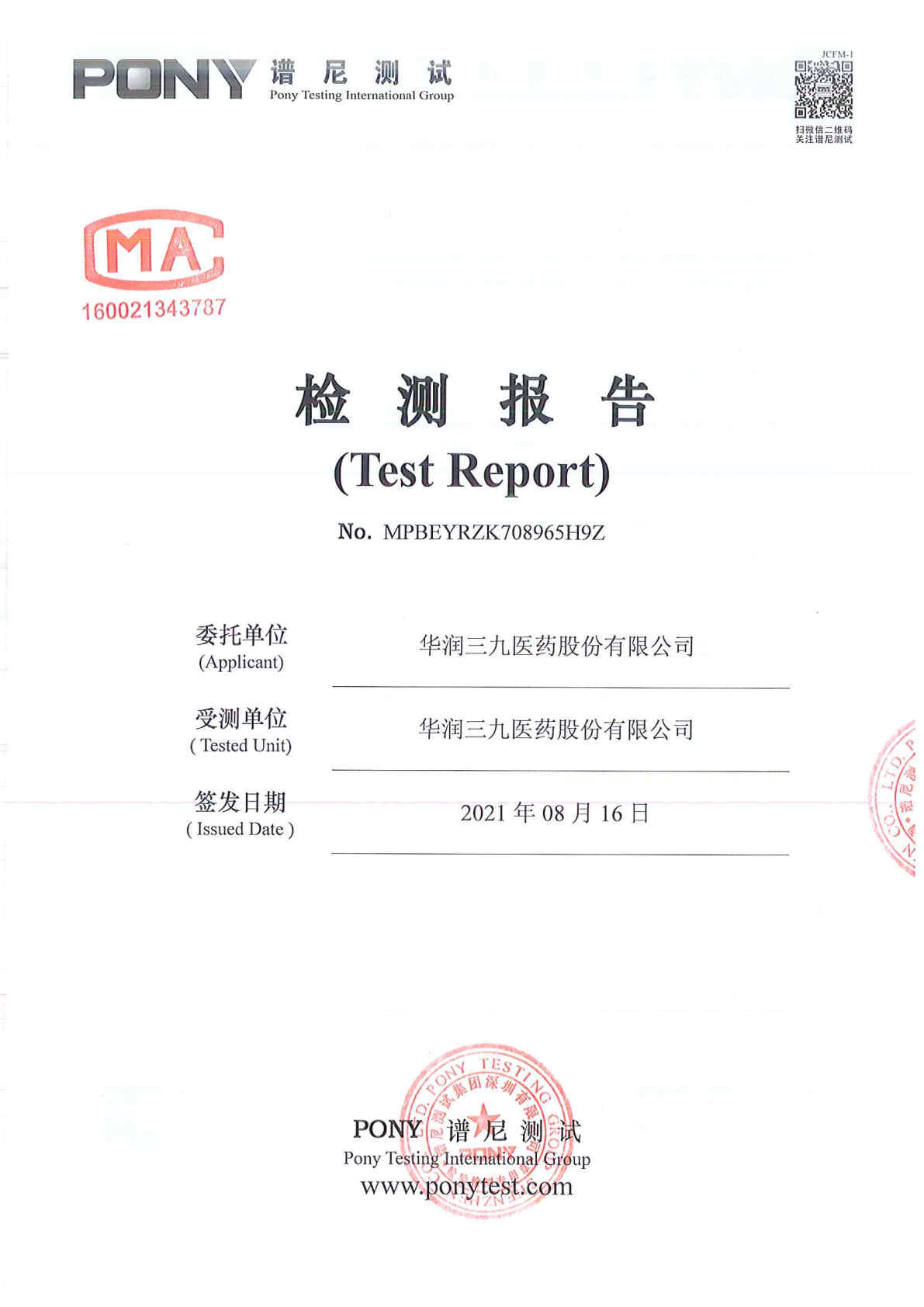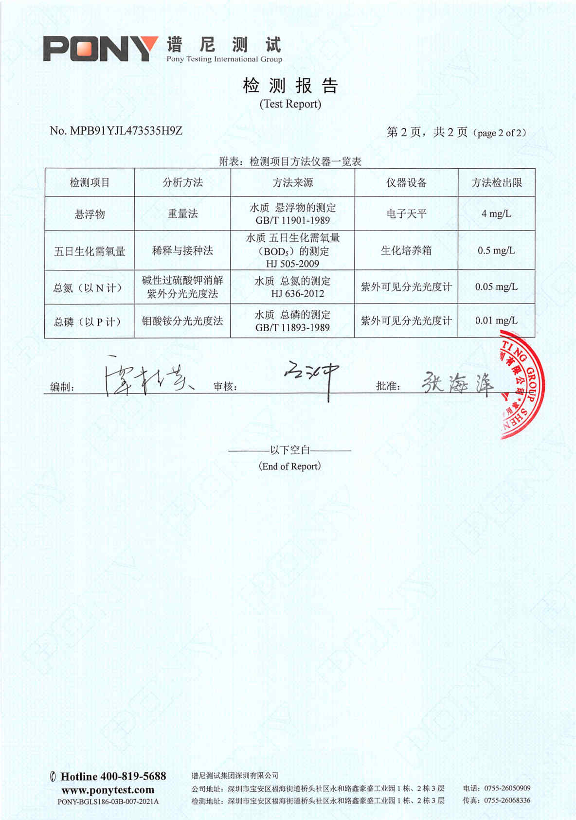 中国·必威(bw·西汉姆联)中文官方网站废水检测报告(2021年3月毒性)