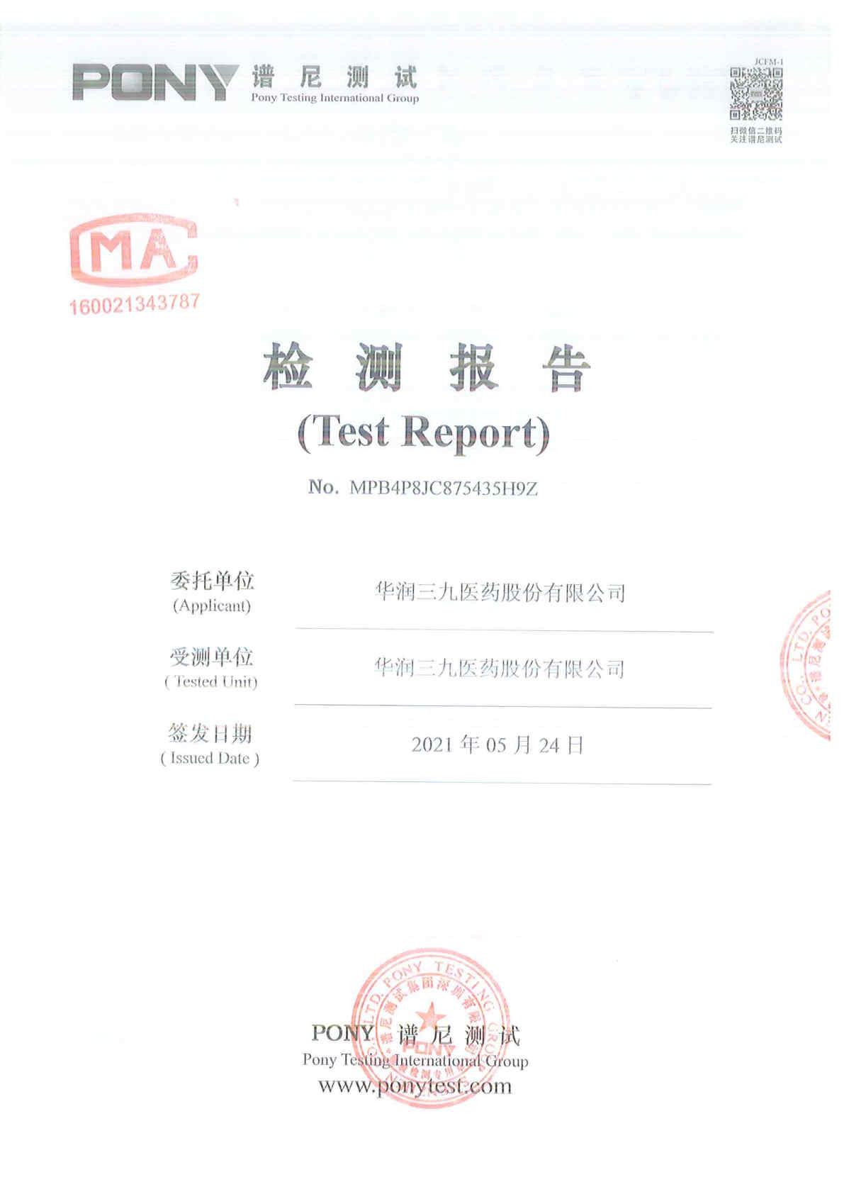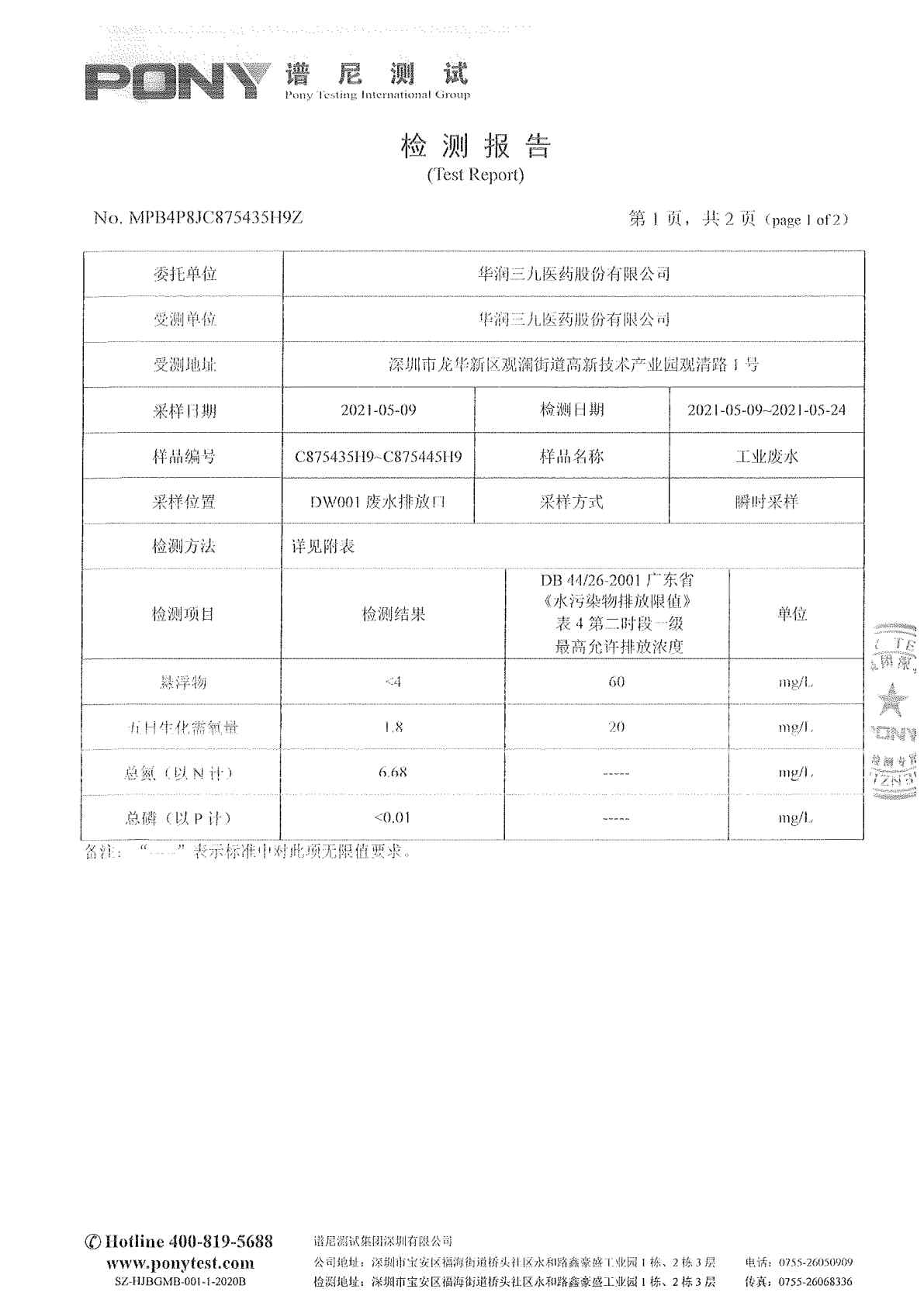 中国·必威(bw·西汉姆联)中文官方网站废水检测报告(2021年5月)