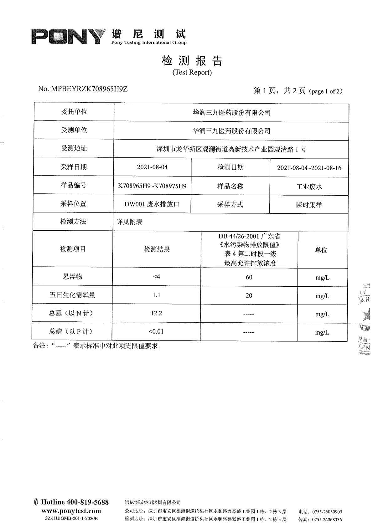 中国·必威(bw·西汉姆联)中文官方网站废水检测报告(2021年8月)