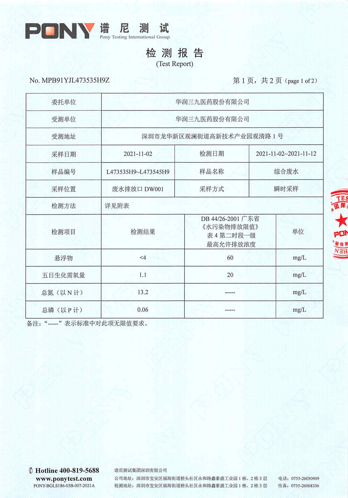 中国·必威(bw·西汉姆联)中文官方网站废水检测报告(2021年11月)