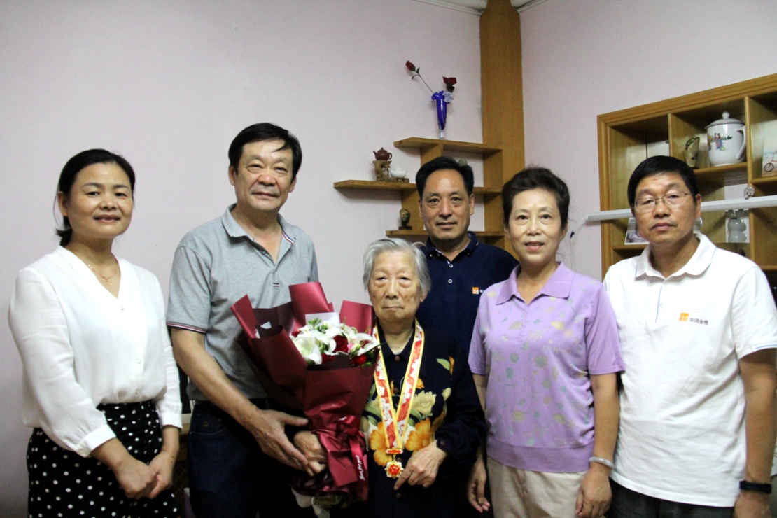 9月17日下午,华润金蟾党委书记王西成和部分班子成员来到离休老同志许积玉家中,将由中共中央、国务院、中央军委颁发的“庆祝中华人民共和国成立70周年”纪念章颁发给她,感谢她为新中国的建设和企业发展做出的贡献,表达了最诚挚的祝福。
