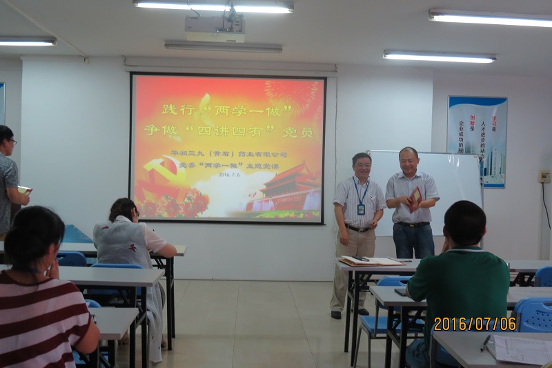 为提高学习的针对性和有效性,继续将“两学一做”学习教育活动推向深入,继7月1日参加中国·必威(bw·西汉姆联)中文官方网站总部组织的视频党课学习之后,7月6日,中国·必威(bw·西汉姆联)中文官方网站(黄石)药业有限公司党委特邀请黄石市“两学一做”宣讲团成员陈幼华教授,为公司全体党员干部近40人讲授了一堂主题为《践行“两学一做”,争做“四讲四有”党员》的党课。公司党建“1+1”结对单位青岛啤酒(黄石)有限公司党员代表也受邀参加党课。