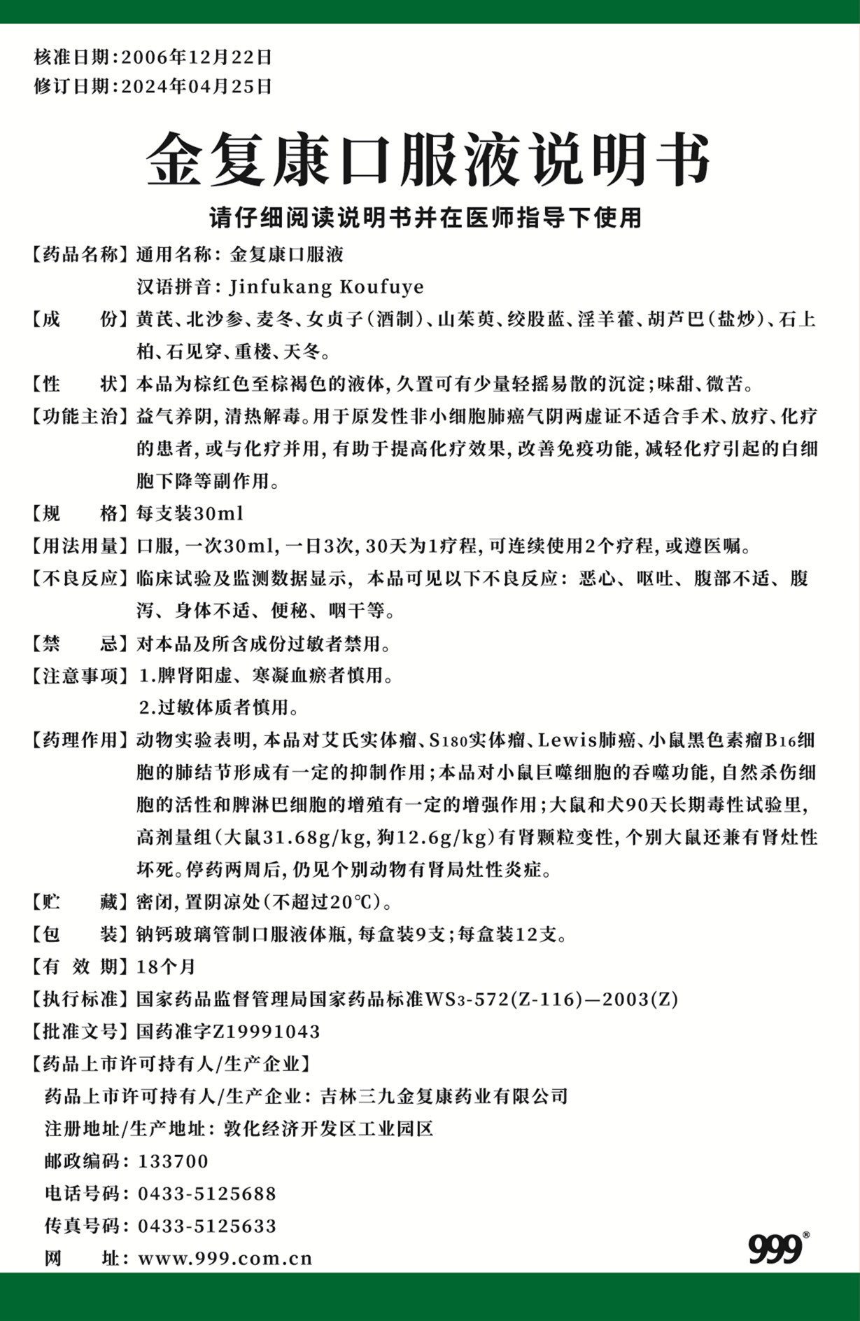 金复康口服液说明书 请仔细阅读说明书并在医师指导下使用 【药品名称】通用名称:金复康口服液 汉语拼音:Jinfukang Koufuye