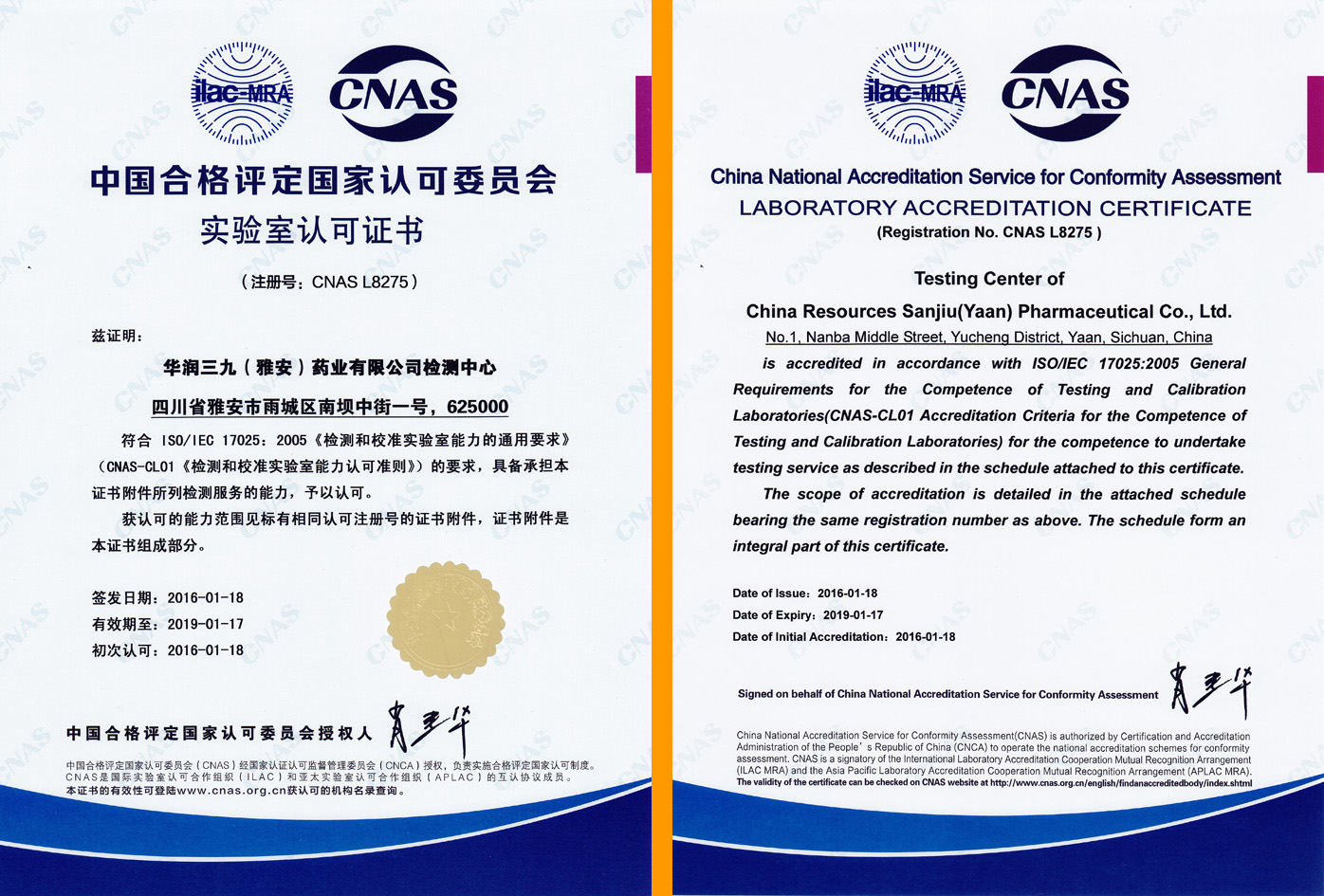 国家实验室认可(ISO/IEC 17025)是国家权威机构CNAS对实验室的公正性和技术管理能力进行全面、系统的评审,对实验室有能力进行规定类型的检测和(或)校准所给予的正式承认,说明无论是硬件建设,还是技术水平、人员素质、专业能力已经达到了较高的水准,标志着中国·必威(bw·西汉姆联)中文官方网站(雅安)质量检验部出具的检测报告具有独立性、可靠性和权威性。